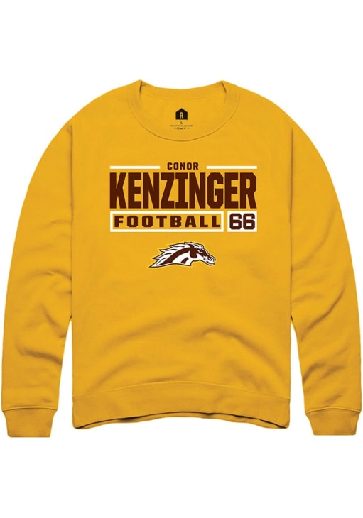 Conor Kenzinger Rally Mens Gold Western Michigan Broncos Football NIL Stacked Box Crew Sweatshirt