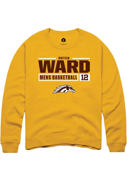 hutch ward Rally Mens Gold Western Michigan Broncos NIL Stacked Box Crew Sweatshirt