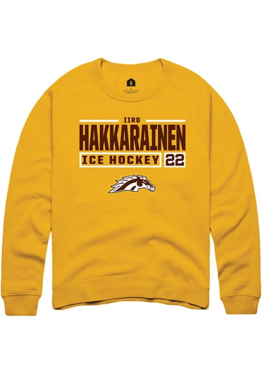 Iiro Hakkarainen Rally Mens Gold Western Michigan Broncos NIL Stacked Box Crew Sweatshirt