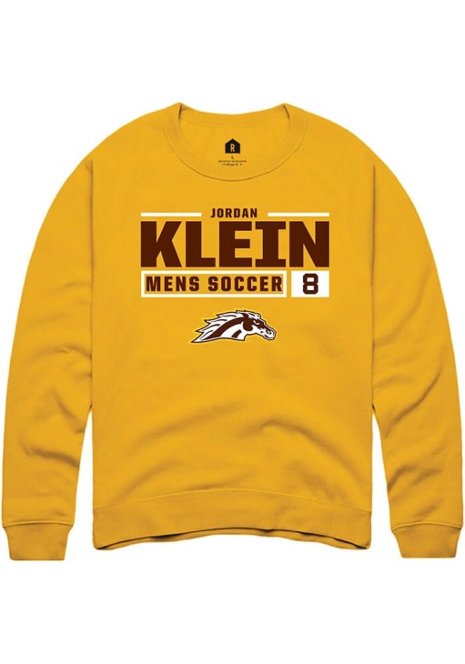 Jordan Klein Rally Mens Gold Western Michigan Broncos NIL Stacked Box Crew Sweatshirt