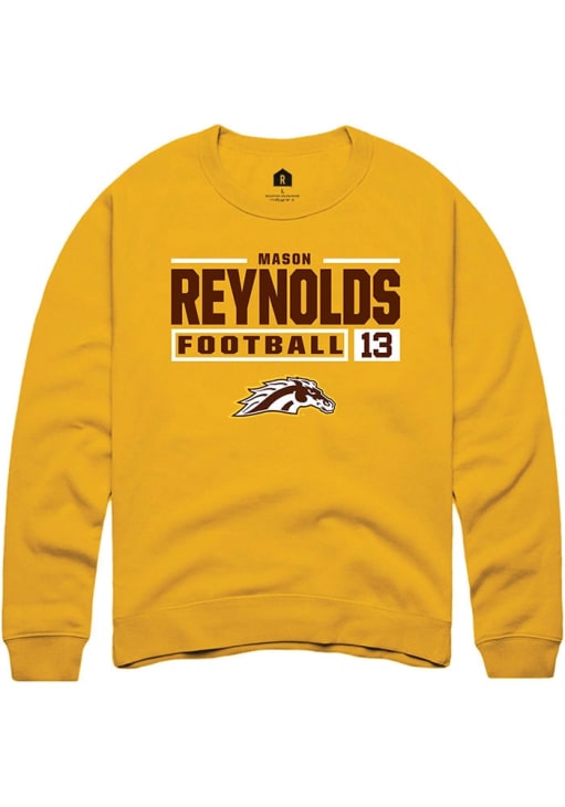 Mason Reynolds Rally Mens Gold Western Michigan Broncos Football NIL Stacked Box Crew Sweatshirt