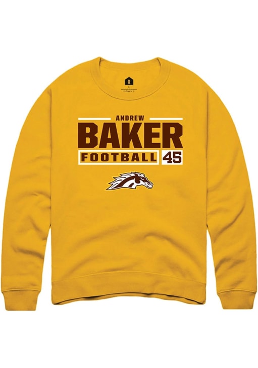 Andrew Baker Rally Mens Gold Western Michigan Broncos Football NIL Stacked Box Crew Sweatshirt
