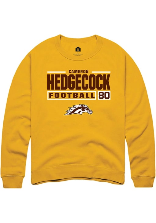 Cameron Hedgecock Rally Mens Gold Western Michigan Broncos Football NIL Stacked Box Crew Sweatshir..