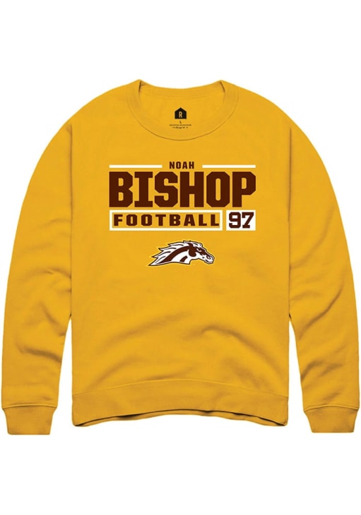 Noah Bishop Rally Mens Gold Western Michigan Broncos Football NIL Stacked Box Crew Sweatshirt