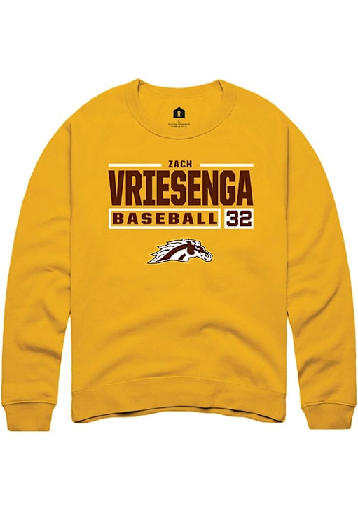Zach Vriesenga Rally Mens Gold Western Michigan Broncos NIL Stacked Box Crew Sweatshirt