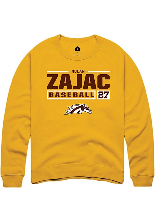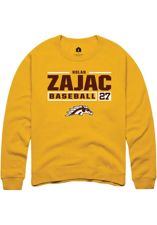 Nolan Zajac Rally Mens Gold Western Michigan Broncos NIL Stacked Box Crew Sweatshirt