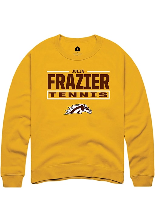 Julia Frazier Rally Mens Gold Western Michigan Broncos NIL Stacked Box Crew Sweatshirt