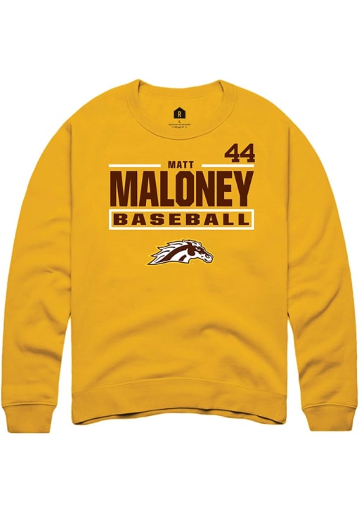 Matt Maloney Rally Mens Gold Western Michigan Broncos NIL Stacked Box Crew Sweatshirt