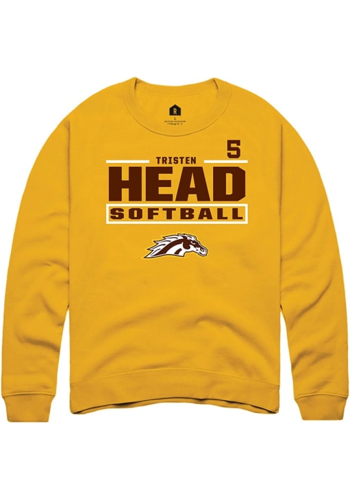 Tristen Head Rally Mens Gold Western Michigan Broncos NIL Stacked Box Crew Sweatshirt