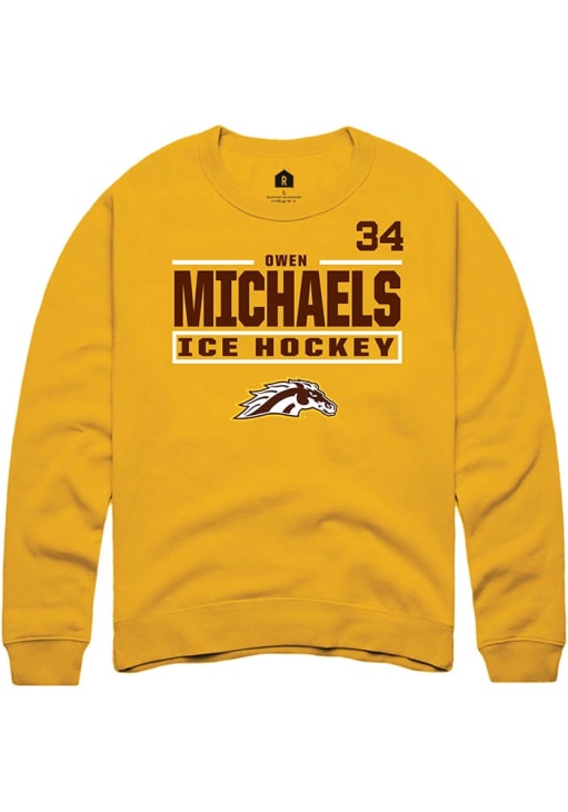 Gear up for the ultimate game day experience with this remarkable Western Michigan BroncosMens Gold NIL Stacked Box Crew Sweatshirt! Designed with the true fan in mind, this Broncos Long Sleeve Crew Sweatshirt features a NIL graphic. Stay warm and comfortable with this Mens WMU Broncos Broncos Crew Sweatshirt.