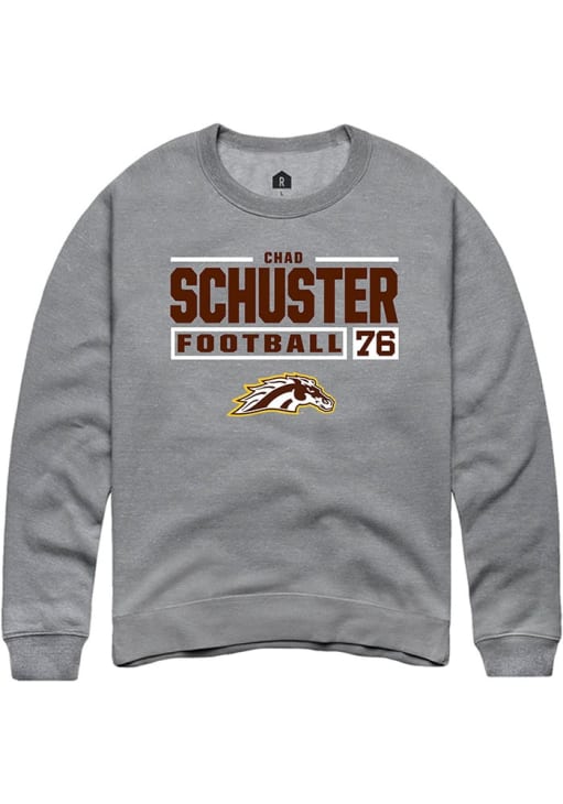 Chad Schuster Rally Mens Grey Western Michigan Broncos Football NIL Stacked Box Crew Sweatshirt