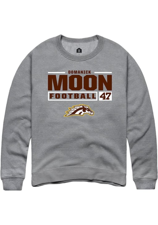 Domanick Moon Rally Mens Grey Western Michigan Broncos Football NIL Stacked Box Crew Sweatshirt
