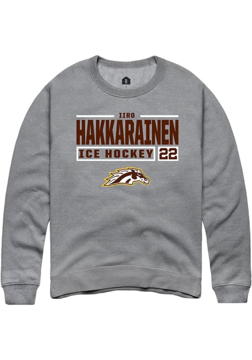Iiro Hakkarainen Rally Mens Grey Western Michigan Broncos NIL Stacked Box Crew Sweatshirt