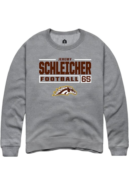 Jeremy Schleicher Rally Mens Grey Western Michigan Broncos Football NIL Stacked Box Crew Sweatshir..