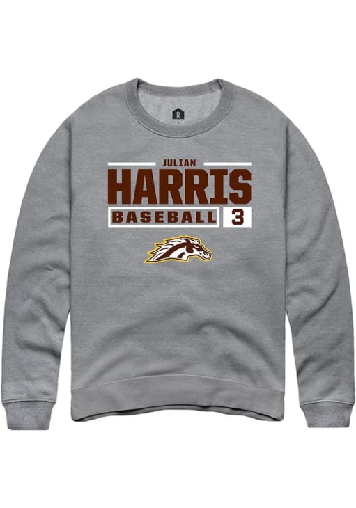 Julian Harris Rally Mens Grey Western Michigan Broncos NIL Stacked Box Crew Sweatshirt