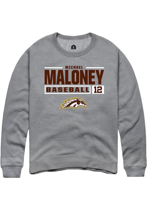Michael Maloney Rally Mens Grey Western Michigan Broncos NIL Stacked Box Crew Sweatshirt