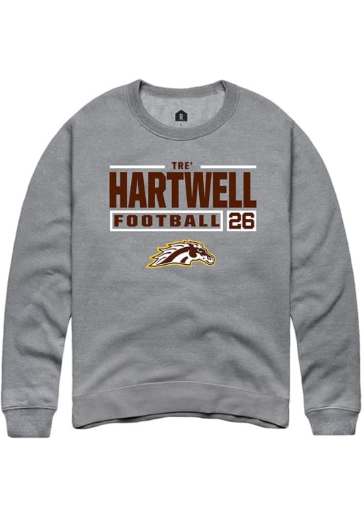 Tre' Hartwell Rally Mens Grey Western Michigan Broncos Football NIL Stacked Box Crew Sweatshirt