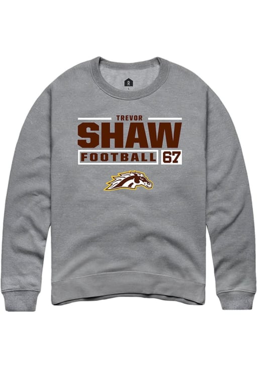 Trevor Shaw Rally Mens Grey Western Michigan Broncos Football NIL Stacked Box Crew Sweatshirt