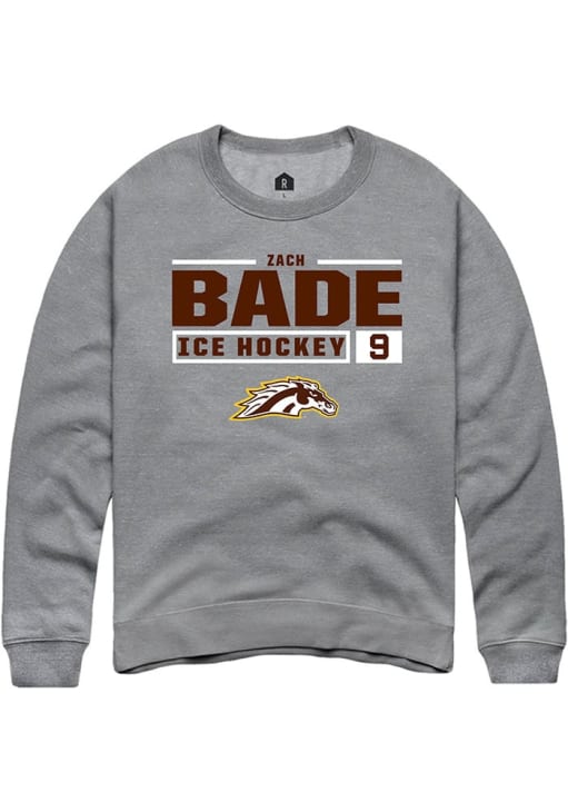 Zach Bade Rally Mens Grey Western Michigan Broncos NIL Stacked Box Crew Sweatshirt