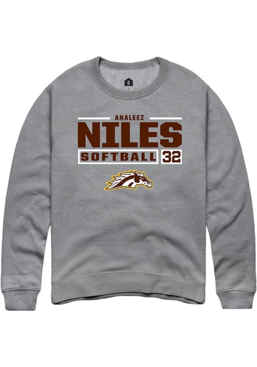Analeez Niles Rally Mens Grey Western Michigan Broncos NIL Stacked Box Crew Sweatshirt