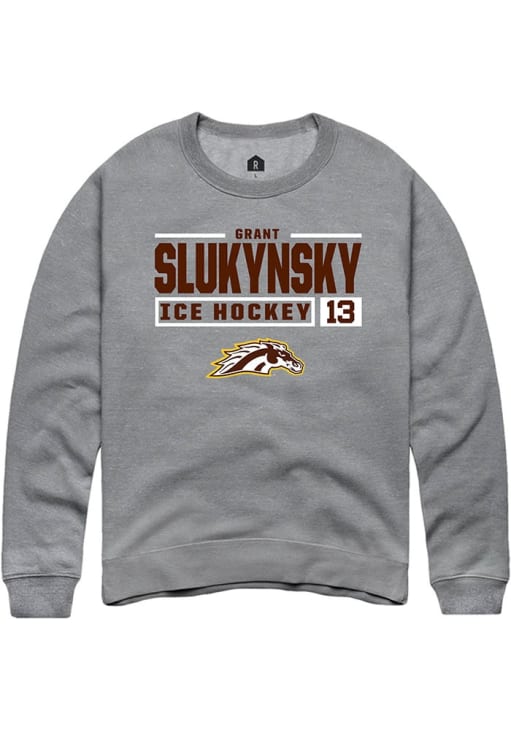 Grant Slukynsky Rally Mens Grey Western Michigan Broncos NIL Stacked Box Crew Sweatshirt