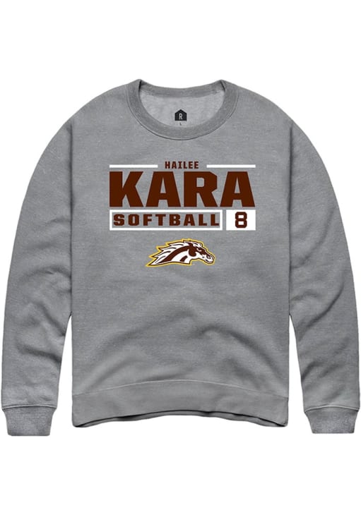 Hailee Kara Rally Mens Grey Western Michigan Broncos NIL Stacked Box Crew Sweatshirt