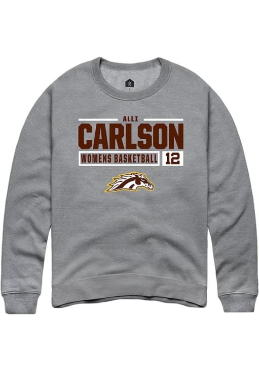 Alli Carlson Rally Mens Grey Western Michigan Broncos NIL Stacked Box Crew Sweatshirt