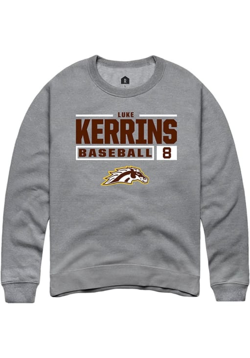Luke Kerrins Rally Mens Grey Western Michigan Broncos NIL Stacked Box Crew Sweatshirt