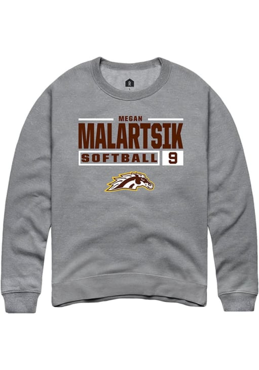 megan malartsik Rally Mens Grey Western Michigan Broncos NIL Stacked Box Crew Sweatshirt