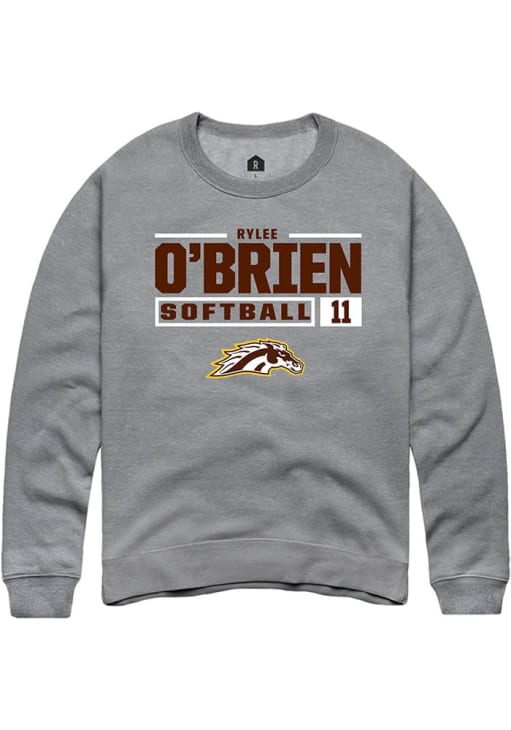 Rylee O'Brien Rally Mens Grey Western Michigan Broncos NIL Stacked Box Crew Sweatshirt