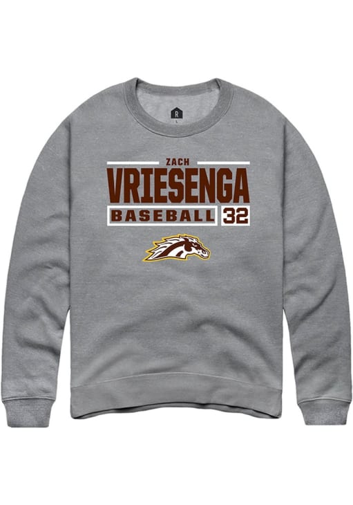 Zach Vriesenga Rally Mens Grey Western Michigan Broncos NIL Stacked Box Crew Sweatshirt