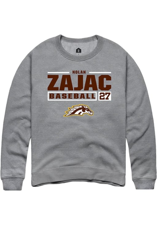 Nolan Zajac Rally Mens Grey Western Michigan Broncos NIL Stacked Box Crew Sweatshirt