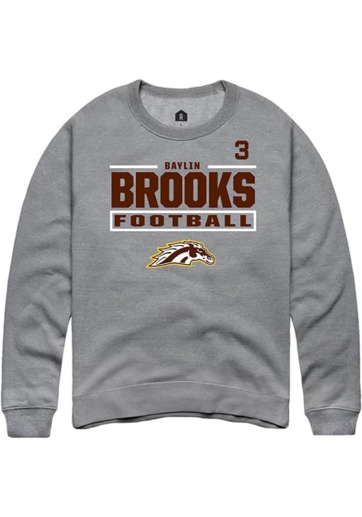 Gear up for the ultimate game day experience with this remarkable Western Michigan BroncosMens Grey Football NIL Stacked Box Crew Sweatshirt! Designed with the true fan in mind, this Broncos Long Sleeve Crew Sweatshirt features a custom graphic with player's name and number. Stay warm and comfortable with this Mens WMU Broncos Broncos Crew Sweatshirt.