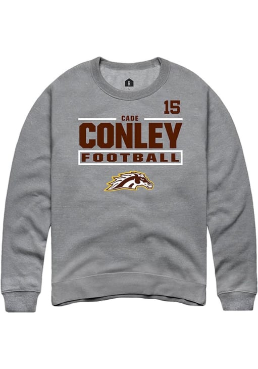 Gear up for the ultimate game day experience with this remarkable Western Michigan BroncosMens Grey Football NIL Stacked Box Crew Sweatshirt! Designed with the true fan in mind, this Broncos Long Sleeve Crew Sweatshirt features a custom graphic with player's name and number. Stay warm and comfortable with this Mens WMU Broncos Broncos Crew Sweatshirt.