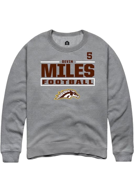 Gear up for the ultimate game day experience with this remarkable Western Michigan BroncosMens Grey Football NIL Stacked Box Crew Sweatshirt! Designed with the true fan in mind, this Broncos Long Sleeve Crew Sweatshirt features a custom graphic with player's name and number. Stay warm and comfortable with this Mens WMU Broncos Broncos Crew Sweatshirt.