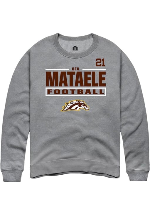 Gear up for the ultimate game day experience with this remarkable Western Michigan BroncosMens Grey Football NIL Stacked Box Crew Sweatshirt! Designed with the true fan in mind, this Broncos Long Sleeve Crew Sweatshirt features a custom graphic with player's name and number. Stay warm and comfortable with this Mens WMU Broncos Broncos Crew Sweatshirt.