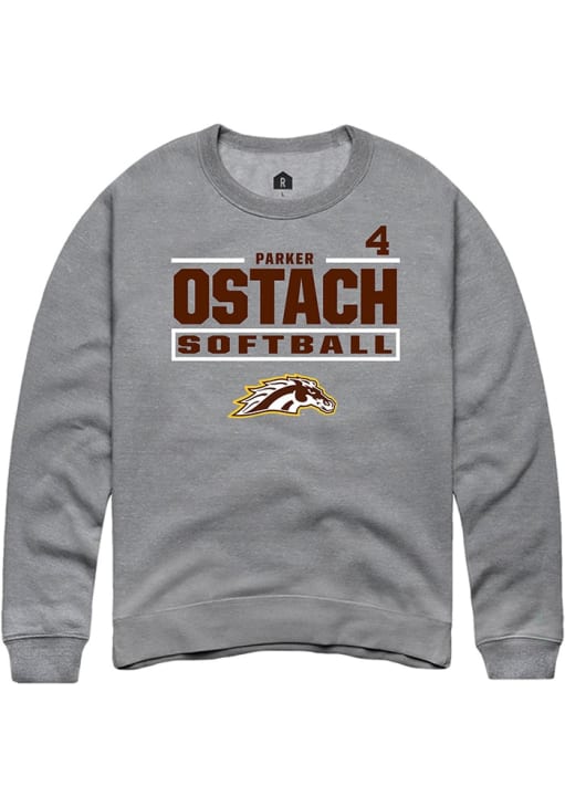 Parker Ostach Rally Mens Grey Western Michigan Broncos NIL Stacked Box Crew Sweatshirt