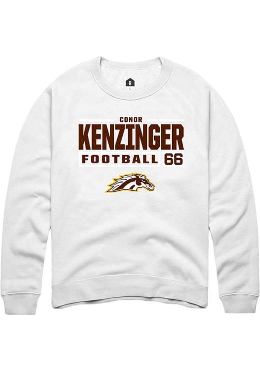 Conor Kenzinger Rally Mens White Western Michigan Broncos Football NIL Stacked Box Crew Sweatshirt