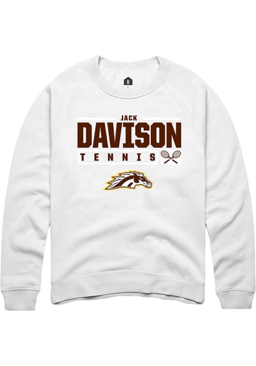 Jack Davison Rally Mens White Western Michigan Broncos NIL Stacked Box Crew Sweatshirt