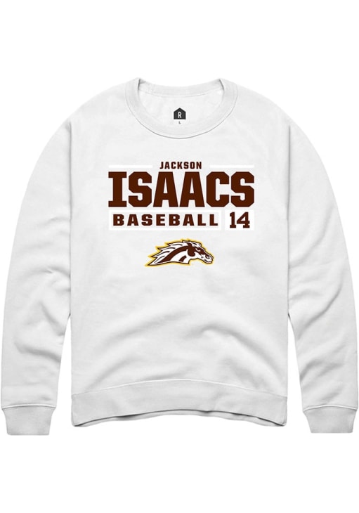 Jackson Isaacs Rally Mens White Western Michigan Broncos NIL Stacked Box Crew Sweatshirt