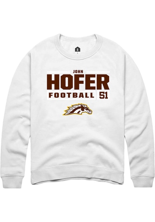 John Hofer Rally Mens White Western Michigan Broncos Football NIL Stacked Box Crew Sweatshirt