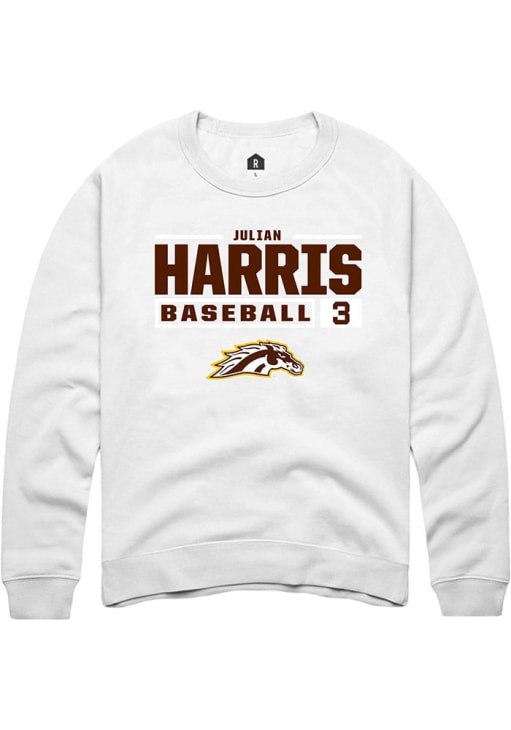 Julian Harris Rally Mens White Western Michigan Broncos NIL Stacked Box Crew Sweatshirt