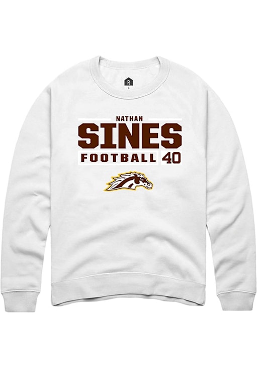 Nathan Sines Rally Mens White Western Michigan Broncos Football NIL Stacked Box Crew Sweatshirt