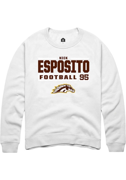 Nick Esposito Rally Mens White Western Michigan Broncos Football NIL Stacked Box Crew Sweatshirt