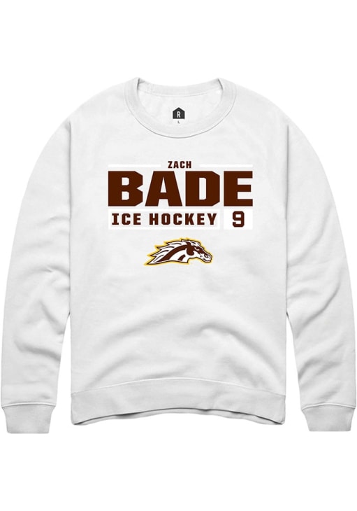 Zach Bade Rally Mens White Western Michigan Broncos NIL Stacked Box Crew Sweatshirt