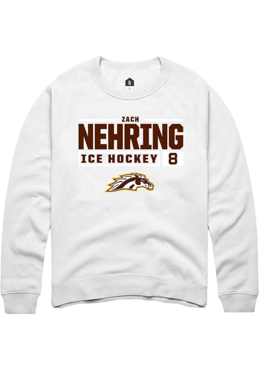 Zach Nehring Rally Mens White Western Michigan Broncos NIL Stacked Box Crew Sweatshirt
