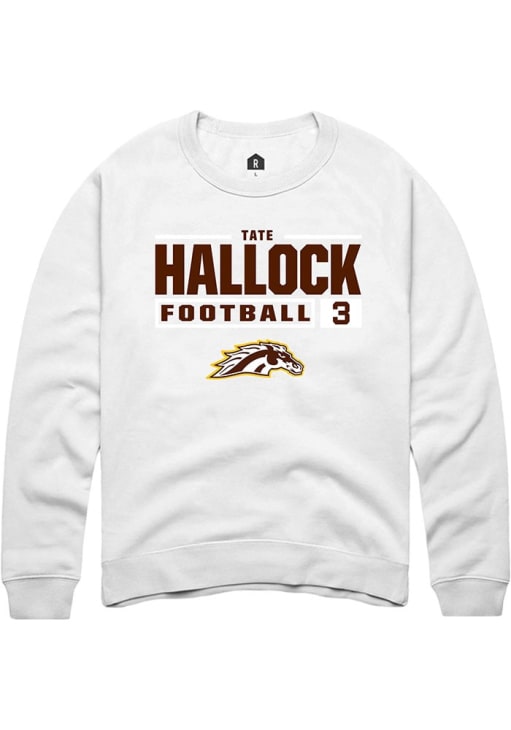 Tate Hallock Rally Mens White Western Michigan Broncos Football NIL Stacked Box Crew Sweatshirt