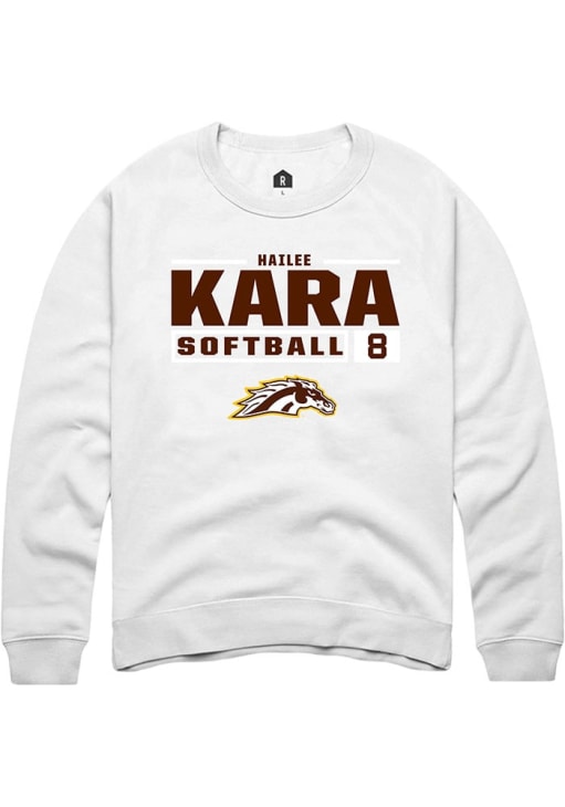 Hailee Kara Rally Mens White Western Michigan Broncos NIL Stacked Box Crew Sweatshirt