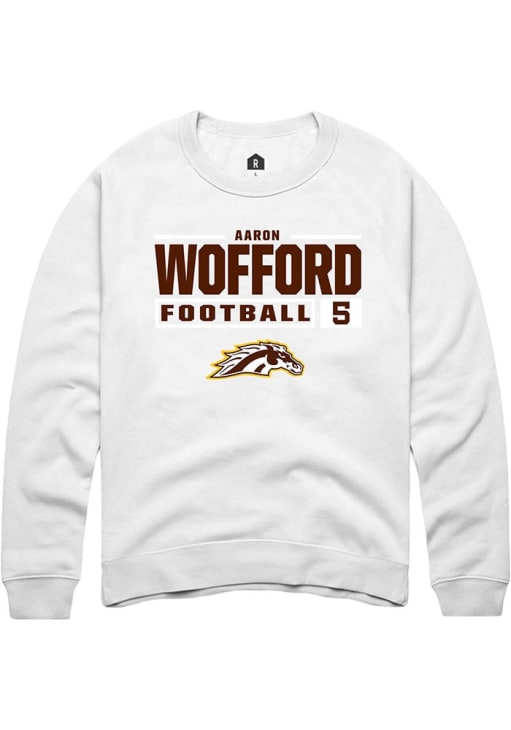 Aaron Wofford Rally Mens White Western Michigan Broncos Football NIL Stacked Box Crew Sweatshirt