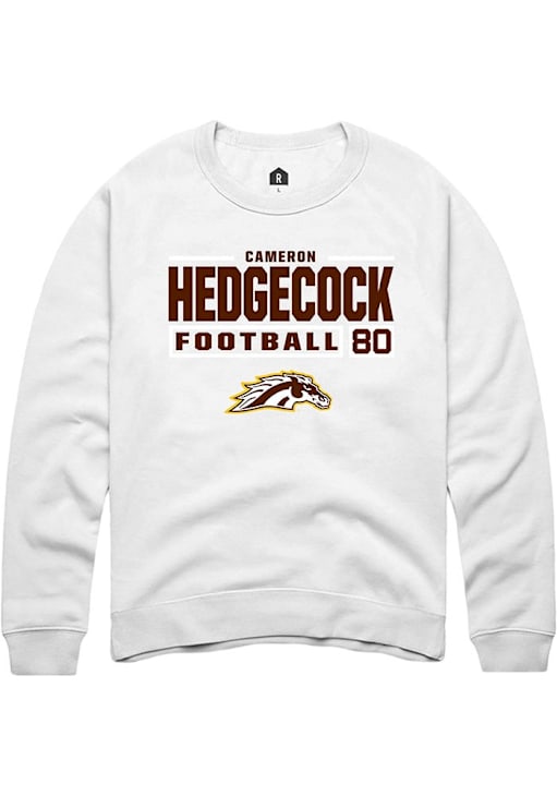 Cameron Hedgecock Rally Mens White Western Michigan Broncos Football NIL Stacked Box Crew Sweatshi..
